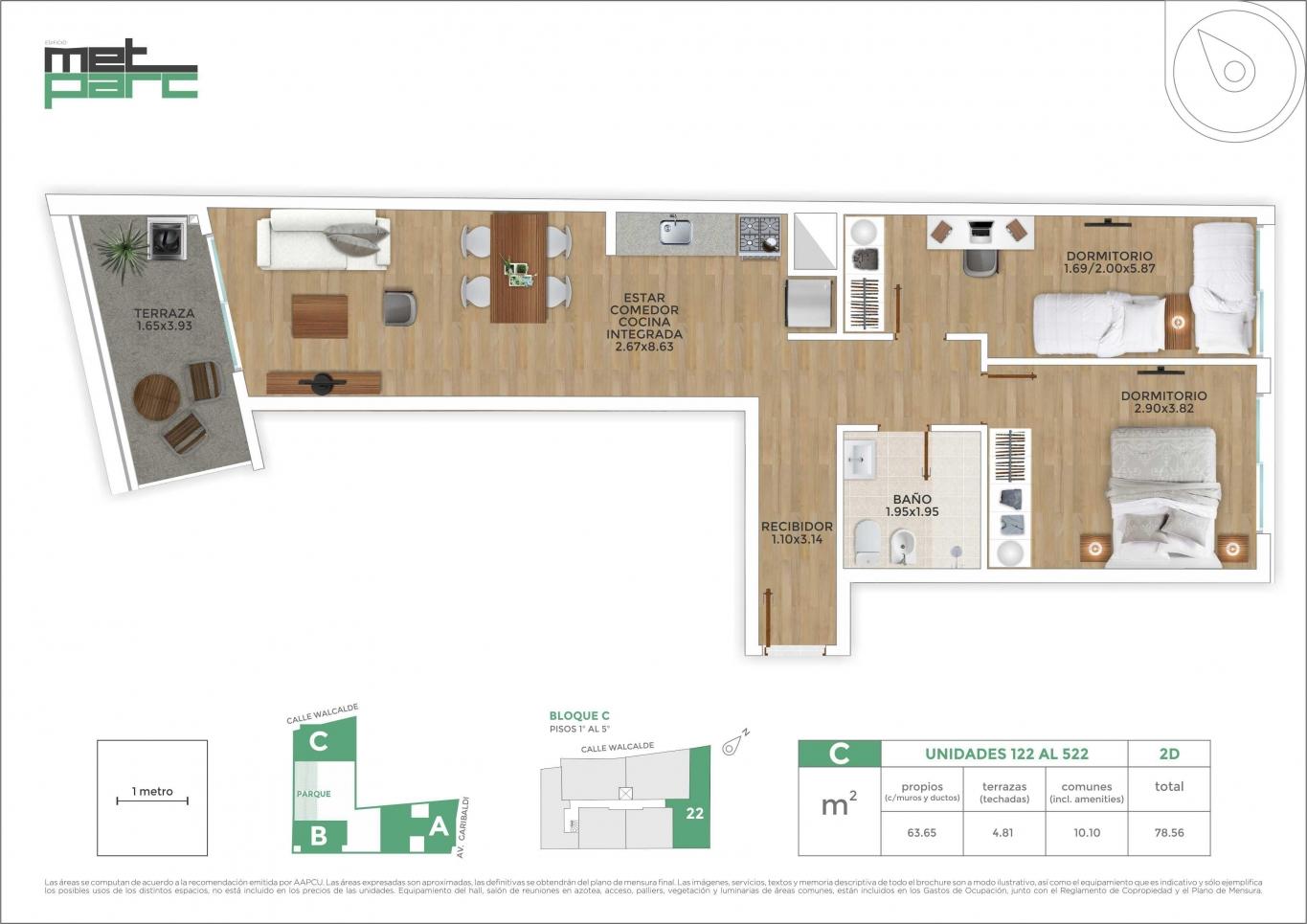 El edificio Met Parc se encuentra a pasos de Av. Garibaldi y Monte Caseros.Próximo a las más importantes mutualistas médicas, terminal de ómnibus Tres Cruces, centros comerciales, centros educativos, facultades, espacios verdes y todos los servicios.