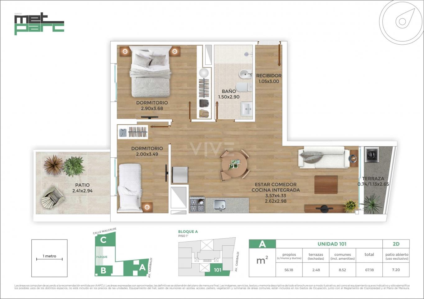 A pasos de Av. Garibaldi y Monte Caseros.Met Parc es un condominio conformado por tres bloques que cuenta con parque para niños, salón multiuso, barbacoa con parrillero y vistas panorámicas, sala de juegos, sala multimedia con pantalla gigante y Gimnasio.