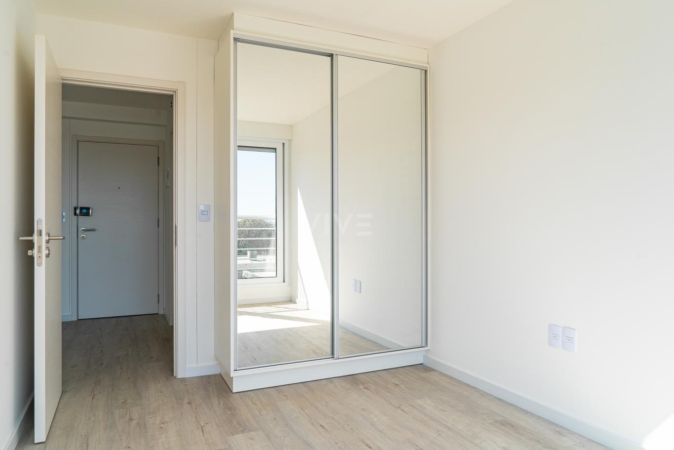1 dormitorios con AA y placard espejado con puertas corredizas.