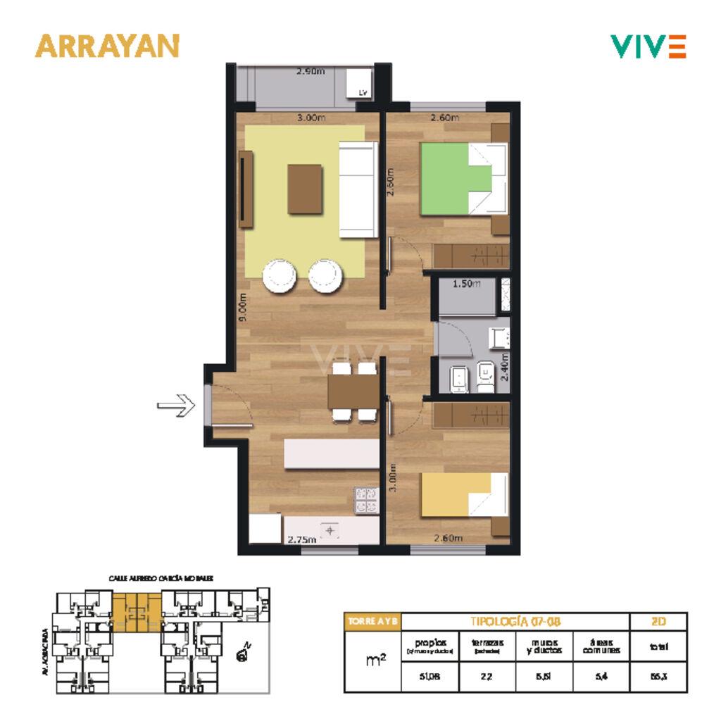 Apartamento de 2 dormitorios: