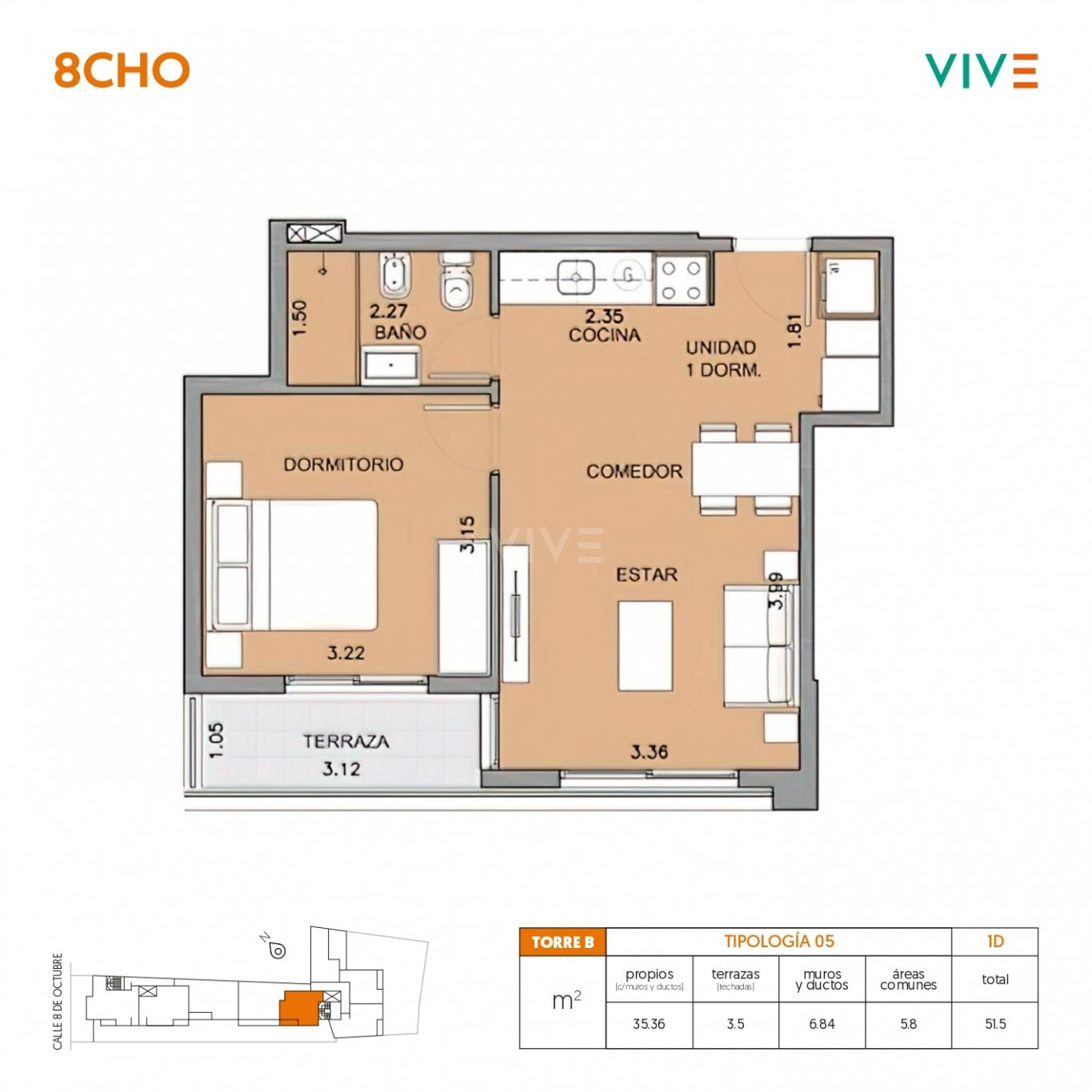 El edificio 8cho está ubicado en 8 de Octubre y Luis A. de Herrera.Próximo a las más importantes mutualistas médicas, terminal de ómnibus Tres Cruces, centros comerciales, centros educativos, facultades, espacios verdes y todos los servicios.