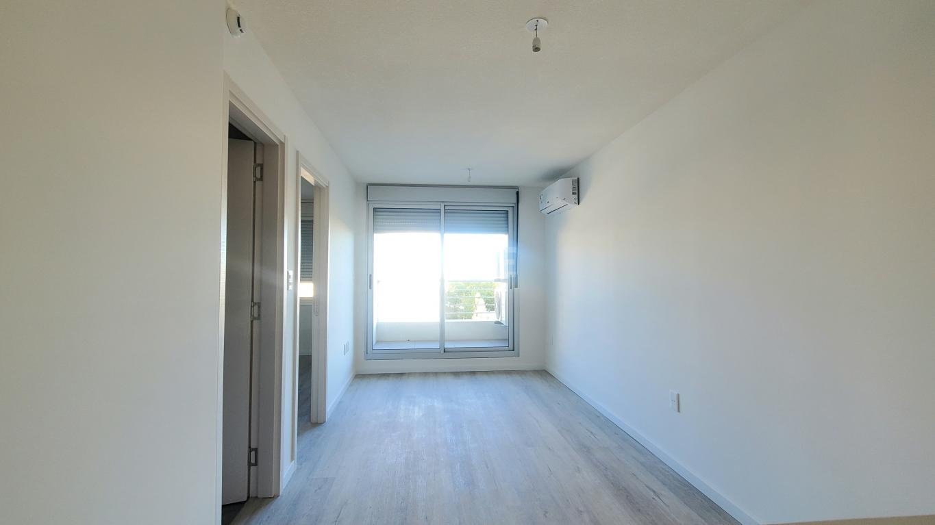 Cómodo apartamento de 1 dormitorio, con living comedor con AA y salida a balcón, cocina integrada con campana, barra, luminarias, etc.