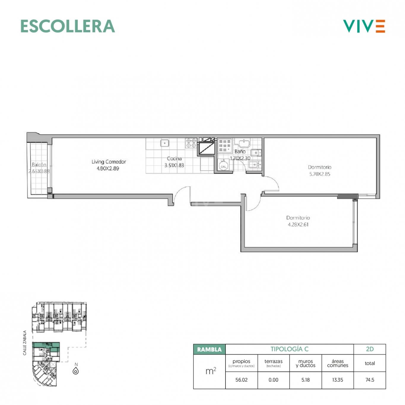 Apartamento de 2 dormitorios con vista lateral a la rambla: